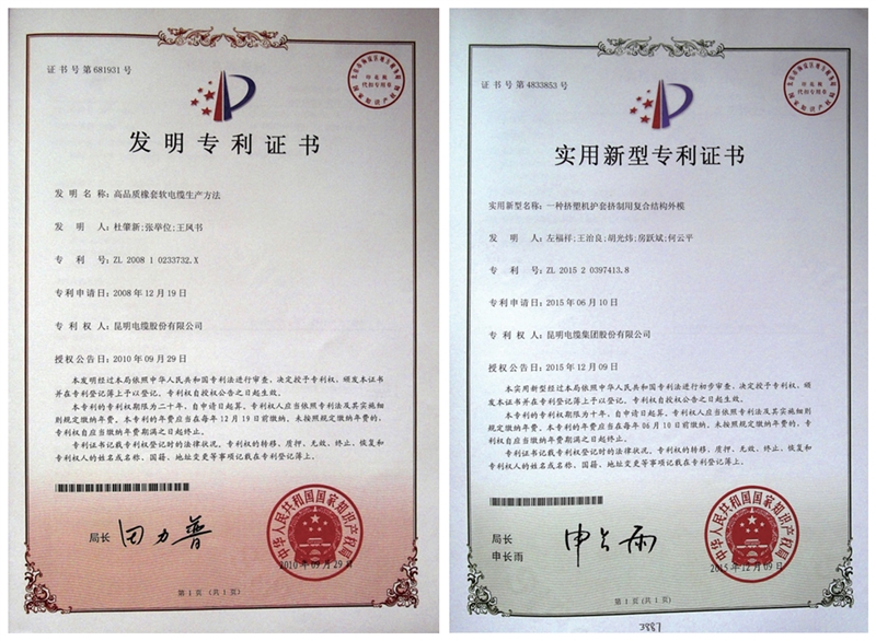 昆明電纜集團股份有限公司擁有一支技術門類齊全、學科結構合理,具有開拓創新精神的產品研發隊伍,建立了有效的激勵創新機制,建有多個試驗室,具有1000多臺套研發試驗設備,形成了較強的產品研發能力。企業技術研發主要為研究電纜新產品、科研項目、新技術、新工藝及新材料應用。同時,企業還同國內一些著名高校、研究所合作,研究、開發新技術和新產品,先后開發出多個具有國內領先水平,適銷對路的電線電纜產品。近年來承擔省市科技項目多個,公司建有云南省電纜工程技術研究中心、云南省工業產品質量控制和技術評價實驗室、昆明市電線電纜工程技術研究中心、昆明市阻燃耐火電纜創新團隊,是云南科技小巨人企業和云南省創新型企業。能按國際(BS、JIS、VDE、IEC)標準,國家標準及用戶特殊要求設計、制造各種電線電纜。
